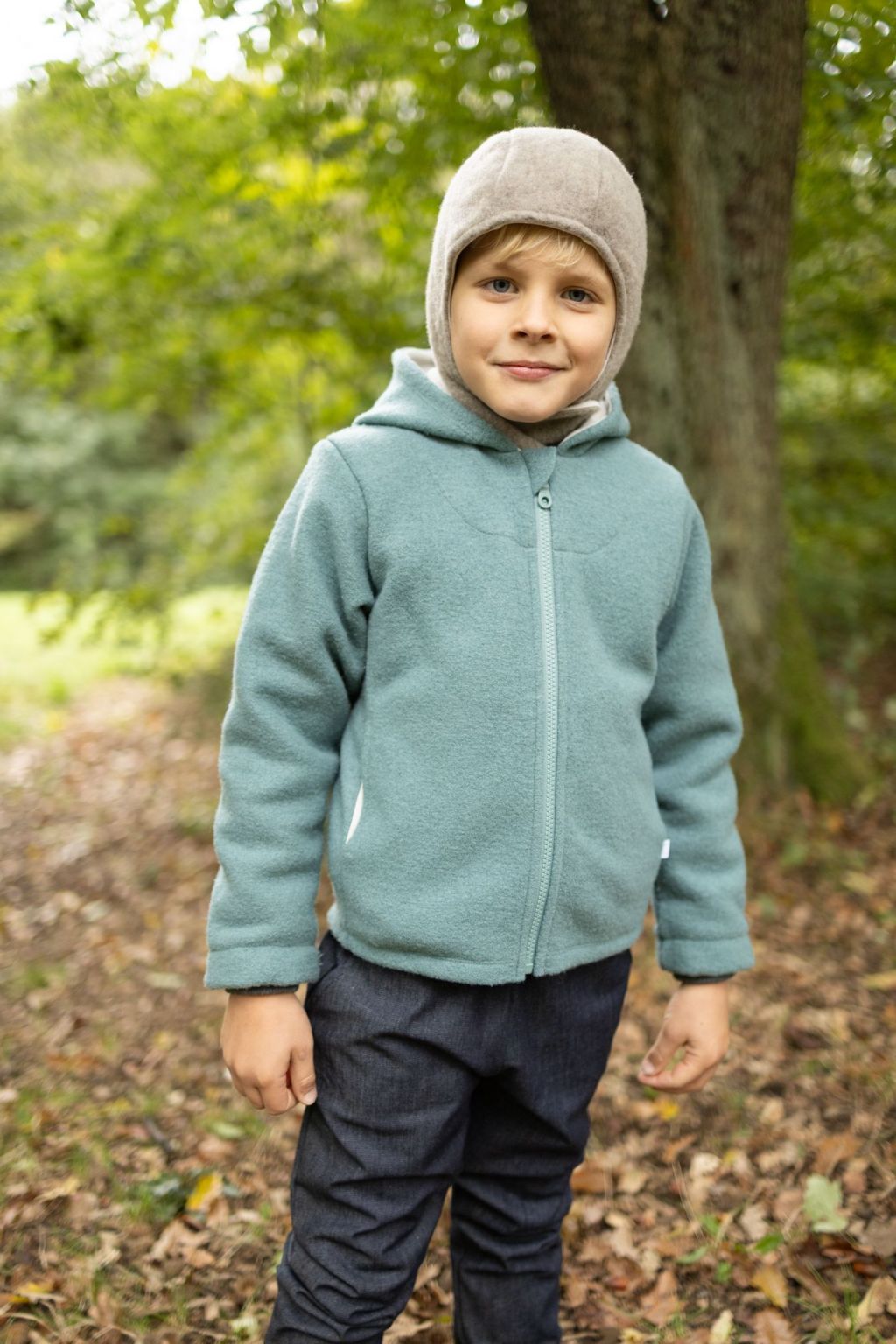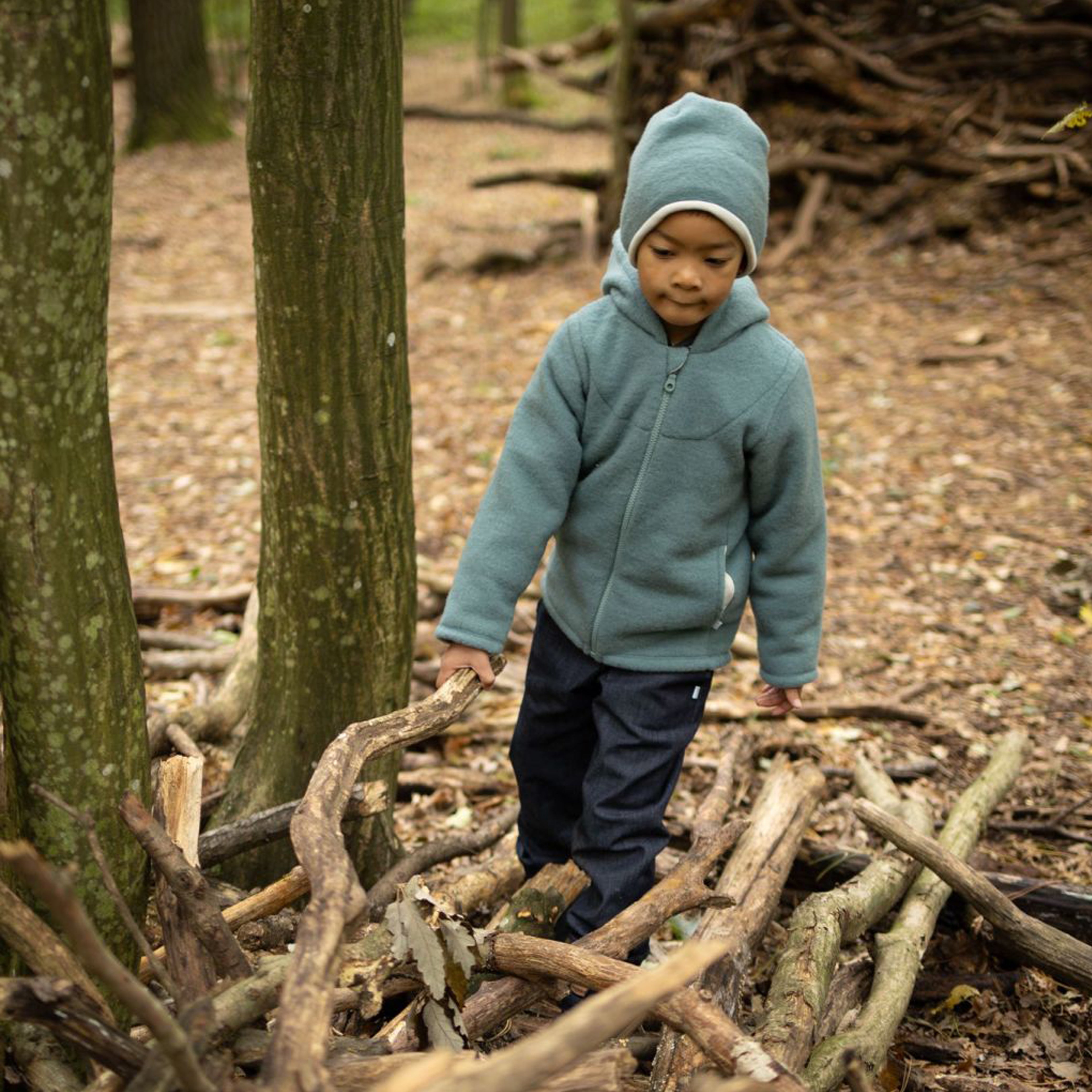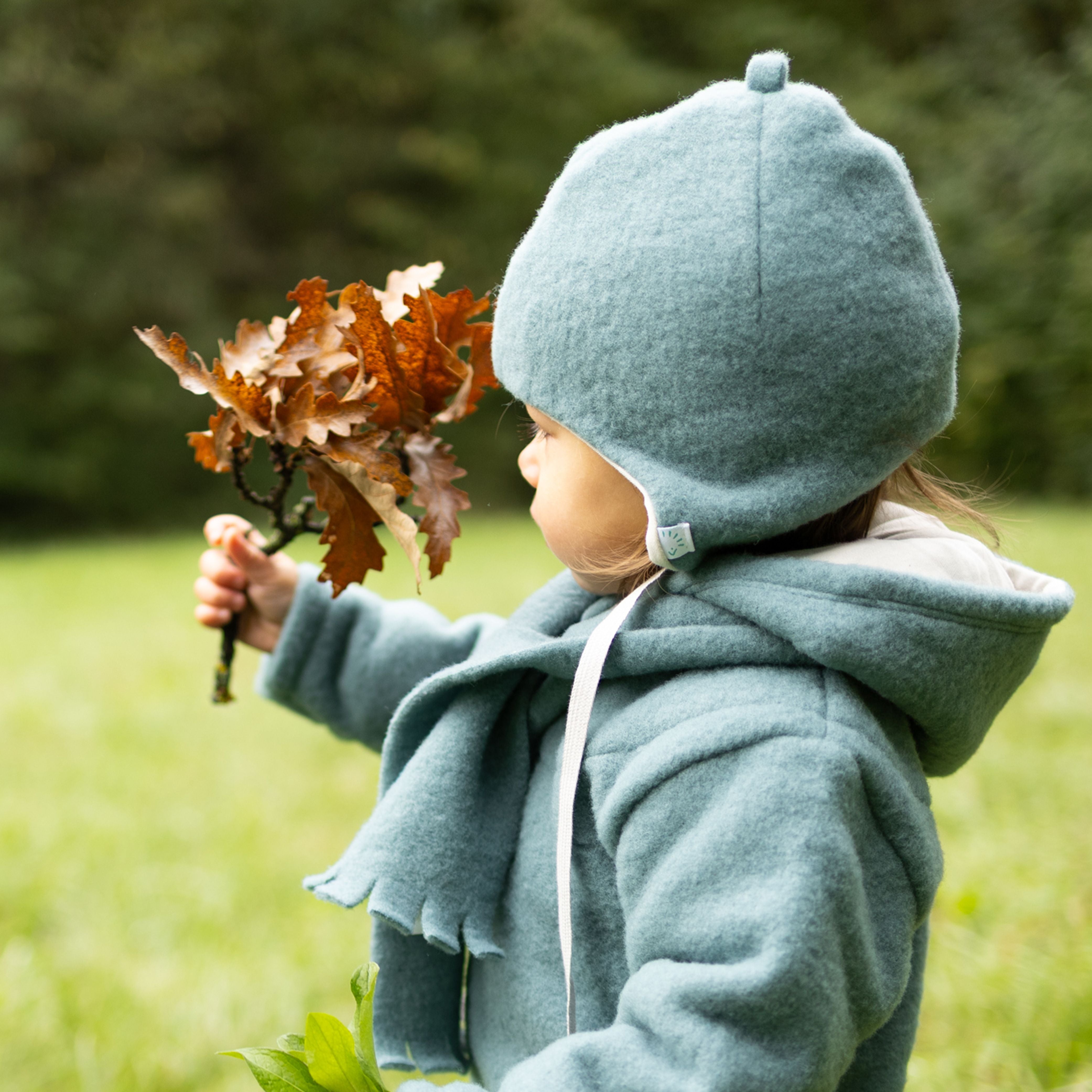 Η κουκούλα είναι επενδεδυμένη με απαλό οργανικό βαμβάκι interlock (kbA) για επιπλέον άνεση. Οι μικρές τσέπες κρατούν με ασφάλεια θησαυρούς όπως πετραδάκια ή φυλλαράκια, ενώ τα γυριστά ρεβέρ στα μεγέθη έως 86/92 κρατούν τα χεράκια ζεστά. Το φερμουάρ με προστατευτικό πηγουνιού κλείνει απαλά χωρίς να “τσιμπάει”.