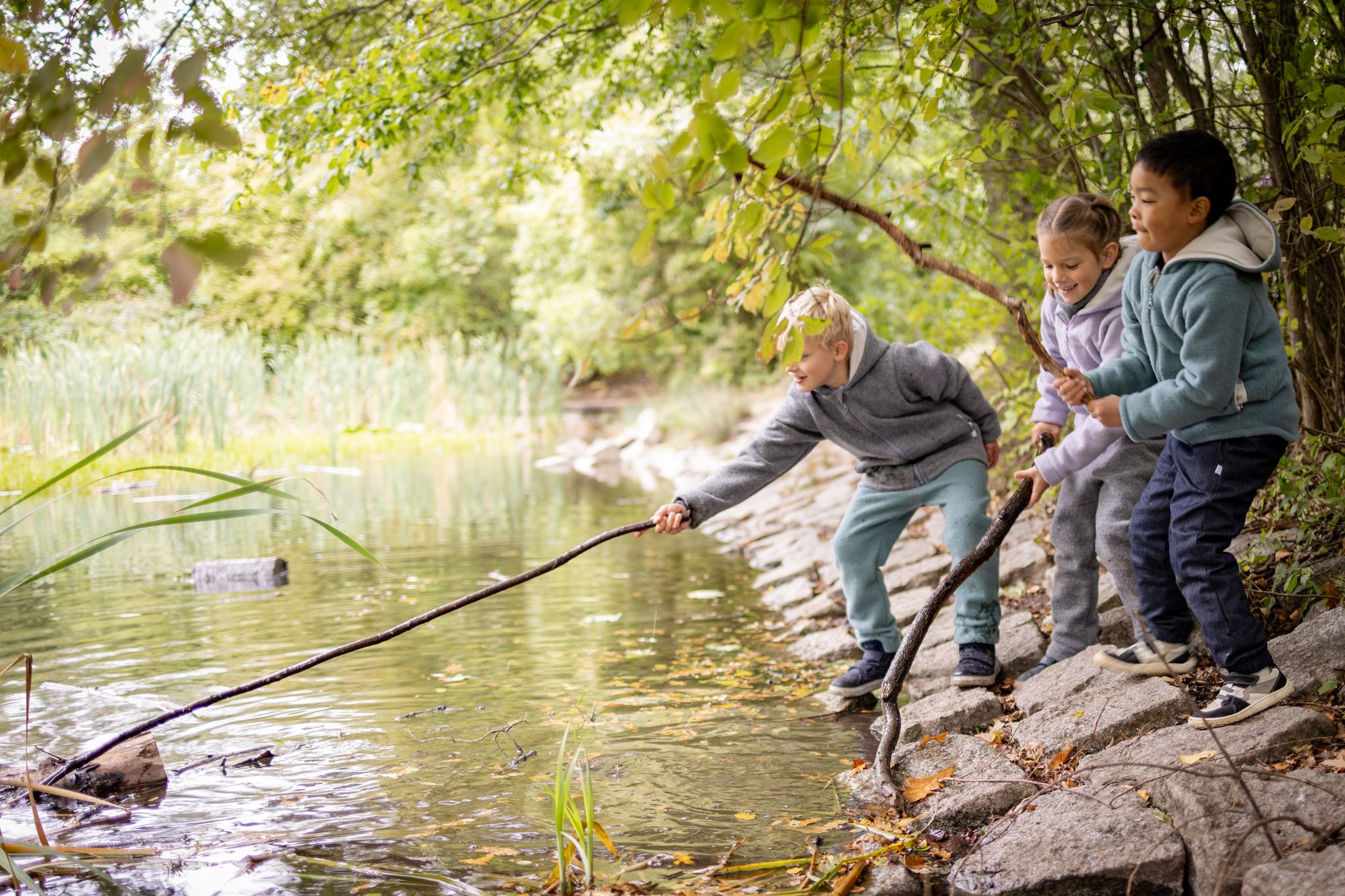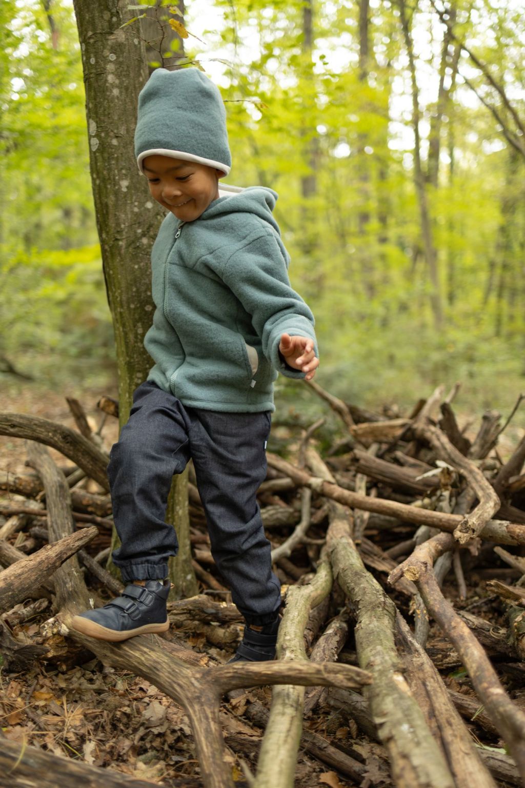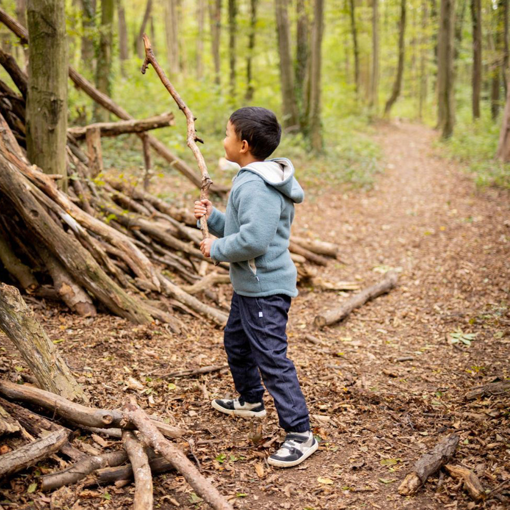 Η κουκούλα είναι επενδεδυμένη με απαλό οργανικό βαμβάκι interlock (kbA) για επιπλέον άνεση. Οι μικρές τσέπες κρατούν με ασφάλεια θησαυρούς όπως πετραδάκια ή φυλλαράκια, ενώ τα γυριστά ρεβέρ στα μεγέθη έως 86/92 κρατούν τα χεράκια ζεστά. Το φερμουάρ με προστατευτικό πηγουνιού κλείνει απαλά χωρίς να “τσιμπάει”.